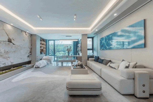 ,如海洋浪潮,不只打造了动感十足的车库体会,更让业主归家之路,从天然光过渡到柔软白光,带来舒适的视觉享受。