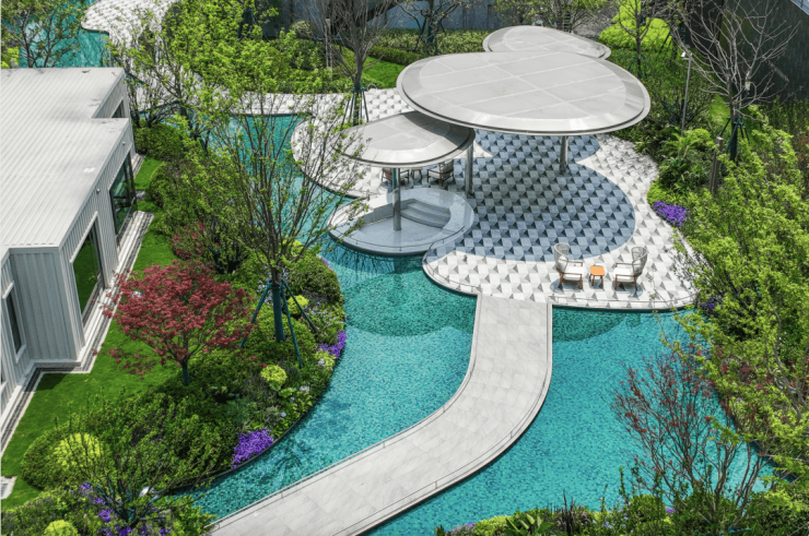项目社区主打的便是休假气氛、松懈感,这栋楼把这种感觉发挥到了极致。放眼全上海,南向无遮挡又直面水系、公园的楼栋又有多少?2#的价值很高。