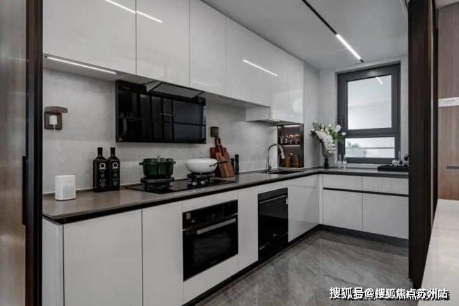 在每一个户型里,厨房皆装备高颜值玻璃移门,以集成铝板吊顶+LED嵌入式条形灯营建厨房顶部,飘窗处打造操作台与储物空间,高质量装饰交给超薄镜面机身油烟机/防干烧燃气灶/洗碗机等品牌系列套装厨电,定制收纳橱柜/升降拉篮/谷物抽/多功能调味篮/碗碟拉篮/飘窗延伸渠道等多重收纳组合复原整齐次序,还有集成线性凉霸与结尾净水器等讲究规划,打造现代化夸姣厨房。