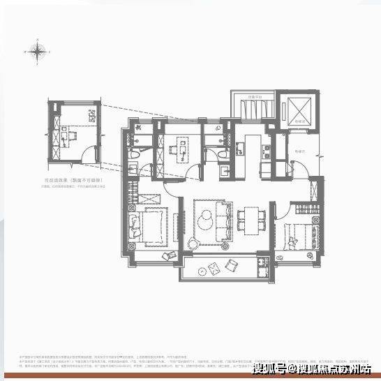 套房主卧装备独立卫生间,是问候主人的爱崇私享。北向灵动X空间既可当作家里的书房,也可根据需求随心改造。